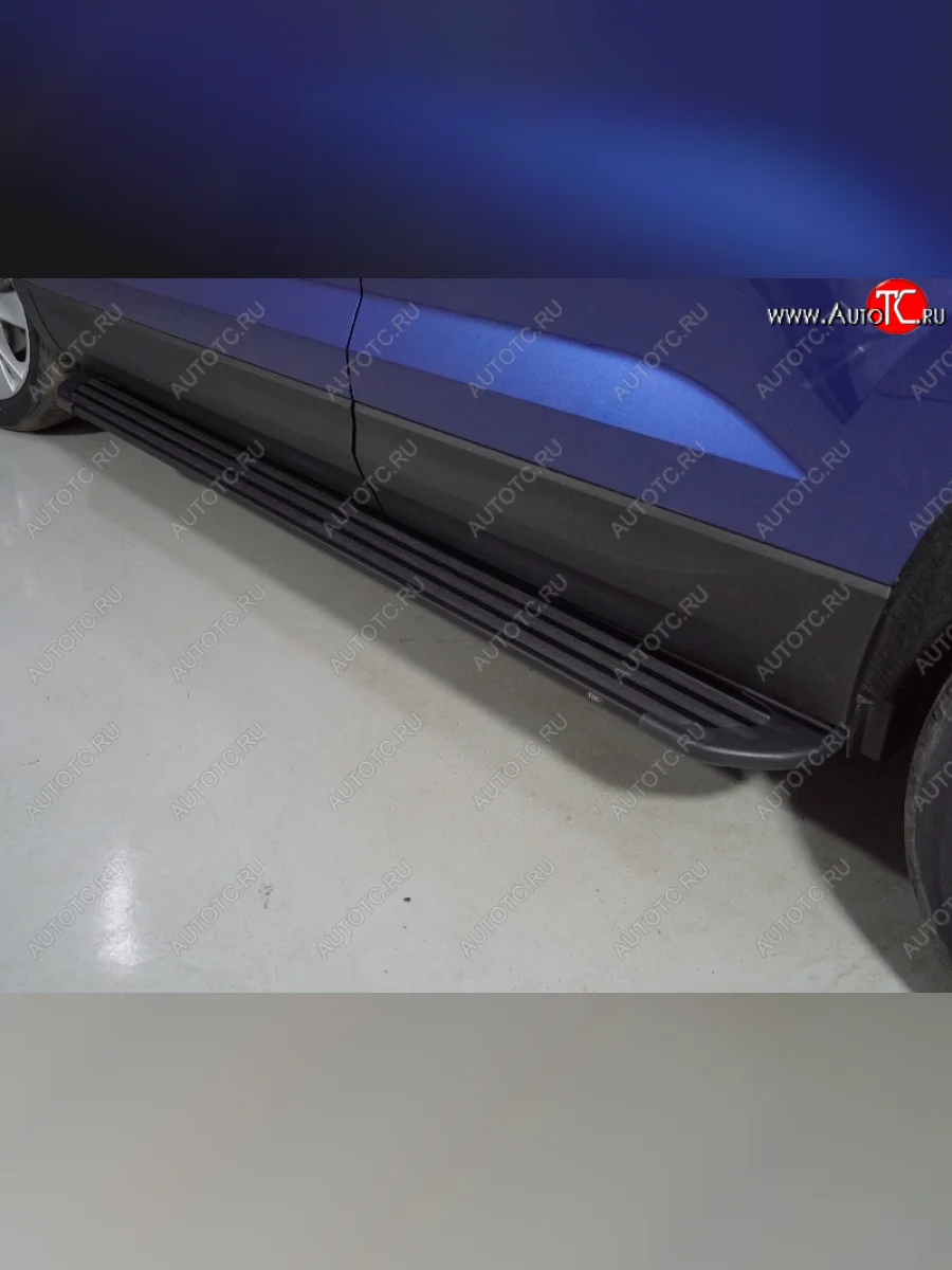 Пороги алюминиевые Slim Line ТСС Тюнинг Volkswagen Taos (2020-2022) (Black) в Кемерово Кемеровской области