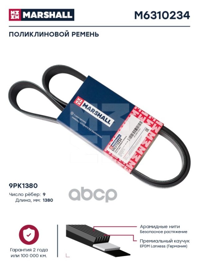 Ремень 9Рк1380 Daf Cf 105 MARSHALL арт. M6310234 в Кемерово Кемеровской области
